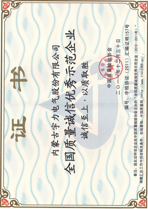 全國質(zhì)量誠信優(yōu)秀示范企業(yè)