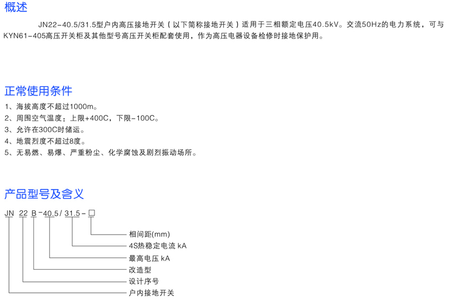 JN22B-40.5/31.5戶內(nèi)高壓接地開關(guān)