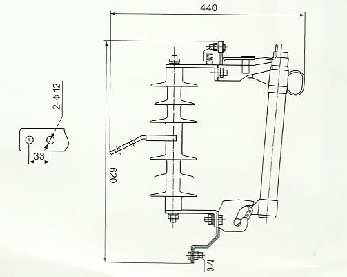 熔斷器是由基座和消弧裝置兩大部分組成,滅弧管下端裝有可能轉(zhuǎn)動(dòng)的彈簧支架,始終使熔絲處于緊張狀態(tài),以保證滅弧管在合閘位置的自鎖,線路與變壓器過(guò)載或短路中,熔絲熔斷,熔絲迅速?gòu)臏缁」苤谐槌?,滅弧管設(shè)計(jì)為逐級(jí)排氣式解決在同一熔斷器上開(kāi)斷大小電流的矛盾。