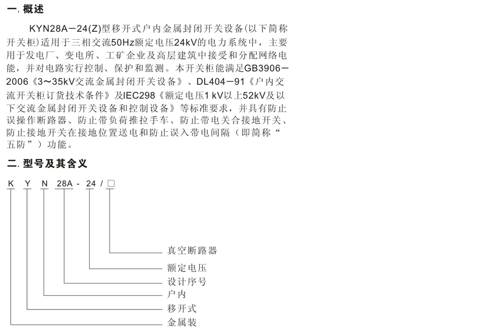 KYN28-24(Z)型移開(kāi)式戶(hù)內(nèi)金屬封閉開(kāi)關(guān)