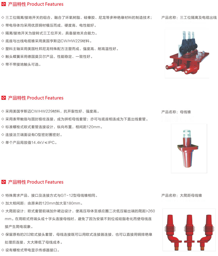 由于該產(chǎn)品具有全絕緣、全密封、全屏蔽的優(yōu)點(diǎn),所以特別適用于高海拔、高溫、濕熱、嚴(yán)寒、污染嚴(yán)重等壞境惡劣的地區(qū)使用。