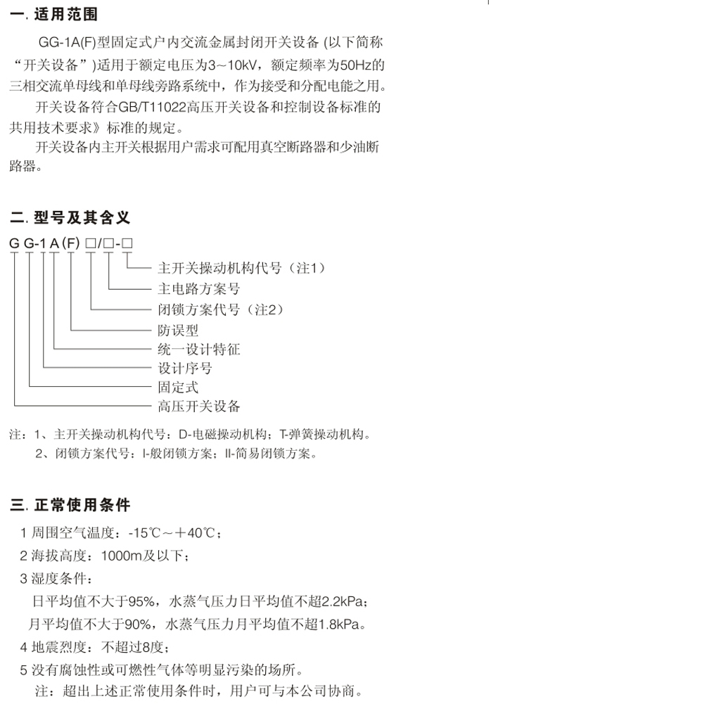 GG-1A(F)型固定式戶內(nèi)交流金屬封閉開關(guān)設(shè)備